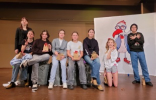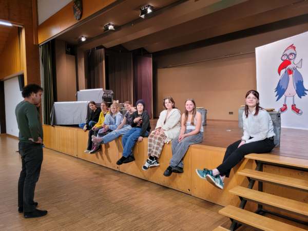 In nur einer Schulwoche Anfang Dezember bereiteten fünf Schülerinnen der Realschule und zwei Schülerinnen sowie ein Schüler der Mittelschule gemeinsam eine Theateraufführung zum Thema Kinderarmut in Deutschland vor. Ideengeber und Regisseur des Stücks "Pleitegeier" ist der Theaterpädagoge Jean-Francois Drozak. Die Schülerinnen der Realschule, Luisa Bayer (6c), Leonie Giebel (7b), Nicole Ring (7f), Marlene Sieghart (7b) und Elena Steigleder (7f) zeigten am 11. und 12. Dezember im Gemeindesaal Gernlinden zusammen mit ihren etwa gleichaltrigen Kolleginnen und dem Kollegen aus der Mittelschule insgesamt vier Aufführungen. Diese wurden von ca. 150 Mittelschülern und allen 7. Klassen der Realschule sowie von deren Theatergruppe besucht. Die zentrale Veranstaltung am Freitagvormittag eröffneten die Realschul-Direktorin Frau Lux und die stellvertretende Direktorin der Mittelschule Frau Ehrenfried gemeinsam.
