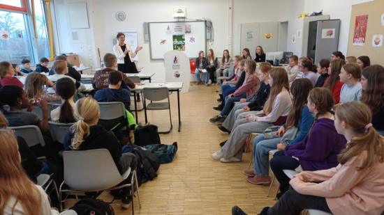 Am Freitag, 21.11.2025 sowie am Montag, 24.11.2025, war der Vormittag an der Orlando-di-Lasso-Realschule Maisach für alle Schüler der 5. Klassen erneut der Literatur gewidmet. Die Kinder- und Jugendbuchautorin Martina Türschmann konnte uns in der Schule besuchen, um aus ihrem Buch "Miesegrimm - Die trügerische Plaudertasche" vorzulesen.
