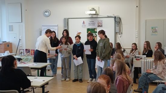 Am 20. November überreichten die Schüler gemeinsam mit Schulleiterin Doris Lux sowie den Wahlfachlehrern Beatrice Pscherer und Tine Schmidt die Spende offiziell an Tafelleiter Normann Wenke, der sich herzlich für das großartige Engagement bedankte.